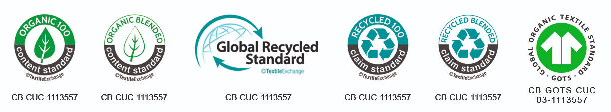 - GOTS, OCS, GRS, RCS Certifications: Ensuring the authenticity of our organic and recycled apparel origins.